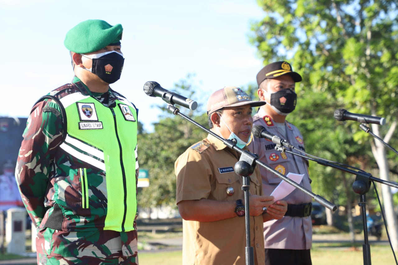Sumbawa Barat, Potretntb.com - Apel siaga penanganan Covid-19 di lapangan Graha Fitrah KTC Kecamatan Taliwang (12/7) kemarin bersama TNI, Polri Bupati Sumbawa Barat DR. Ir. H. W. Musyafirin MM, memerintahkan seluruh ASN lingkup Pemerintah KSB agar tidak melakukan perjalanan keluar daerah.